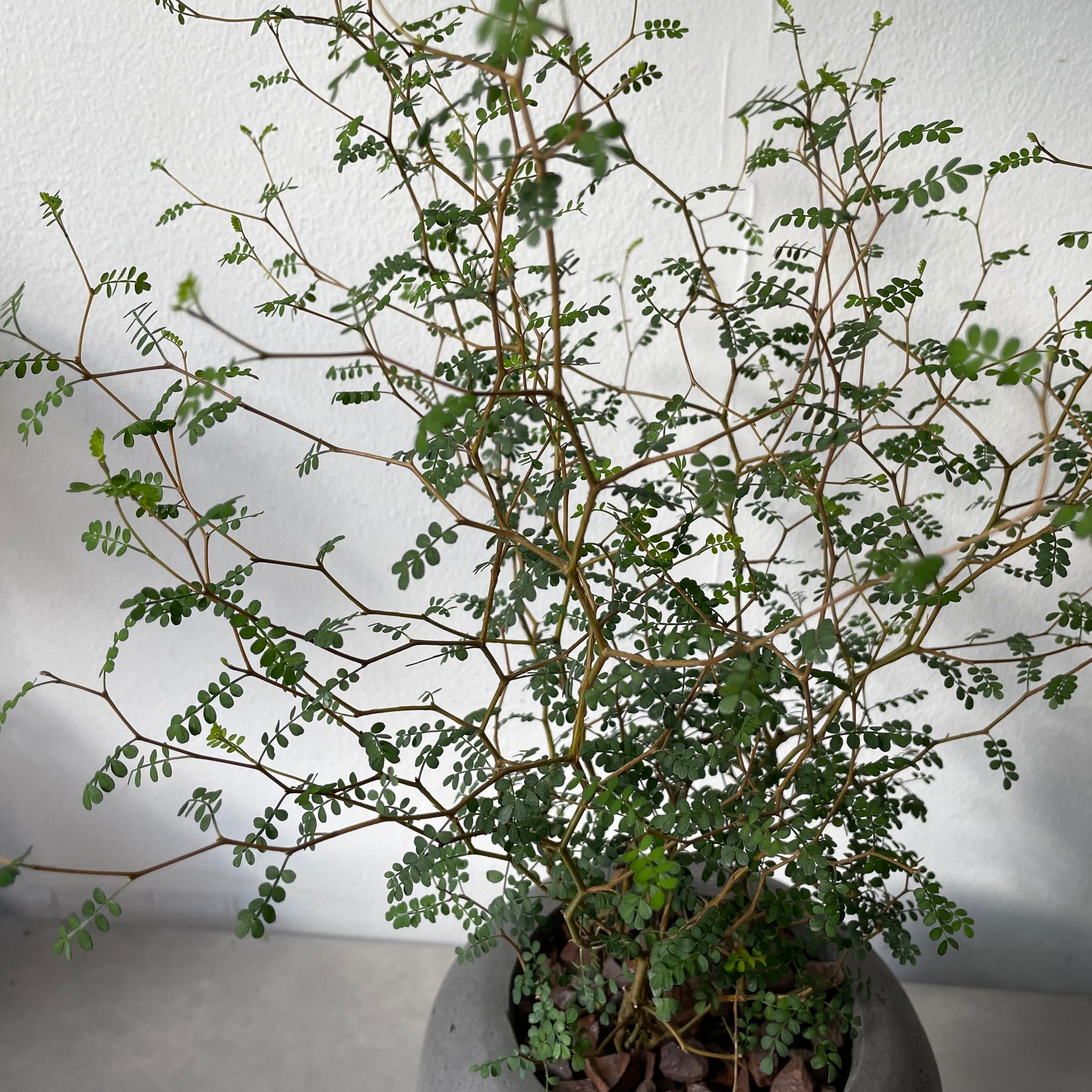 ジグザグに伸びる細い枝と小さな丸い葉が特徴のニュージーランド原産の観葉植物で、「メルヘンの木」とも呼ばれ、室内で人気の高い植物です。明るく風通しの良い場所を好み、日当たり不足や乾燥、寒さに注意が必要で、特に水やりと葉水が重要です。和洋どちらのインテリアにも合う、繊細で愛らしい見た目が魅力で、育て方次第で盆栽のように楽しめます。