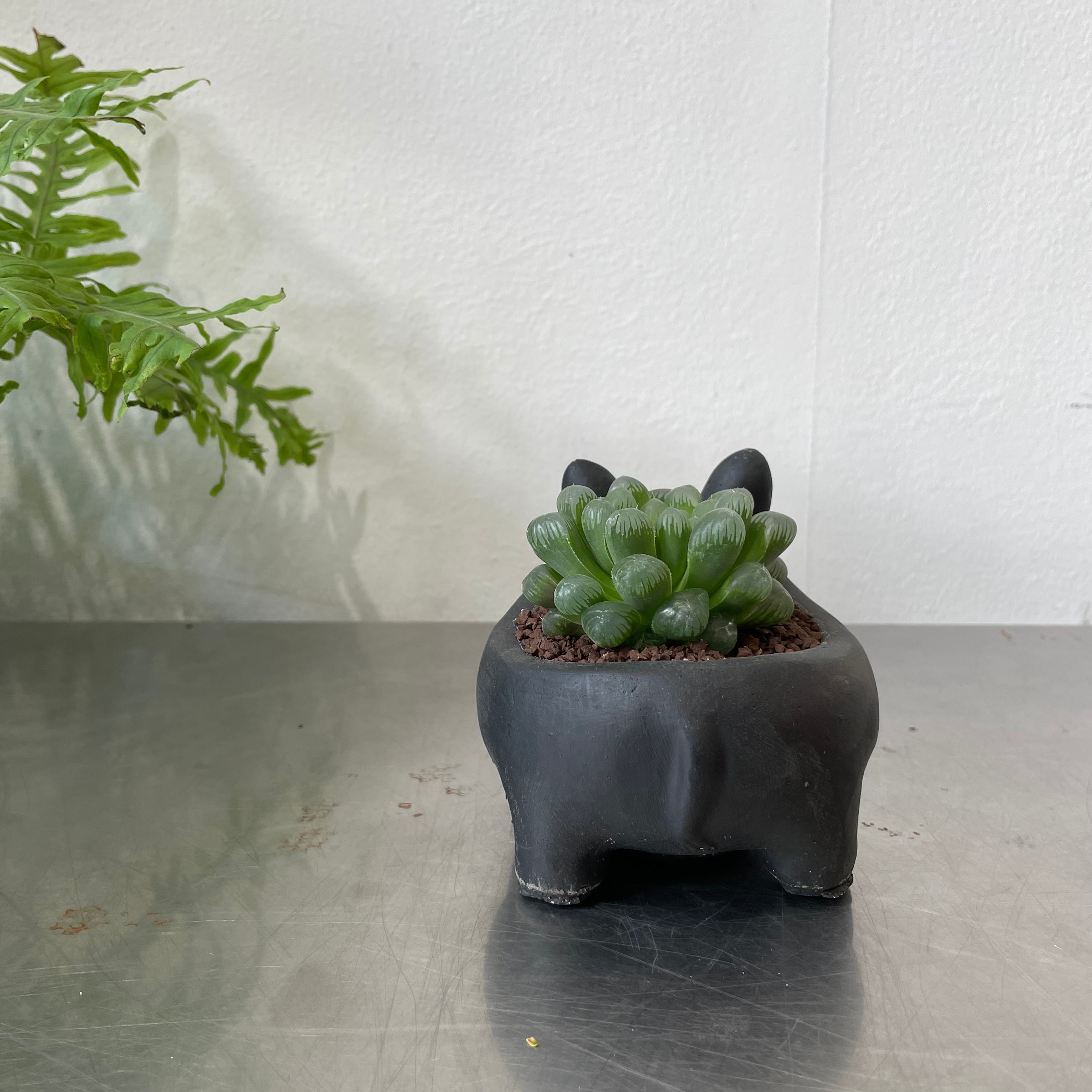 オブツーサは、丸い葉先の先端が透き通っていることから和名が「雫石(しずくいし)」といい、光にかざすと雫のようにきれいな葉っぱが特徴で人気の品種です。葉っぱの透明部分はマニアの間では「窓」と呼ばれ、その窓から光を取り込んで生長します。ハオルチアの中でも丈夫な品種のため、初心者さんにもおすすめです。環境が合えば横からどんどん子株が出てきます。