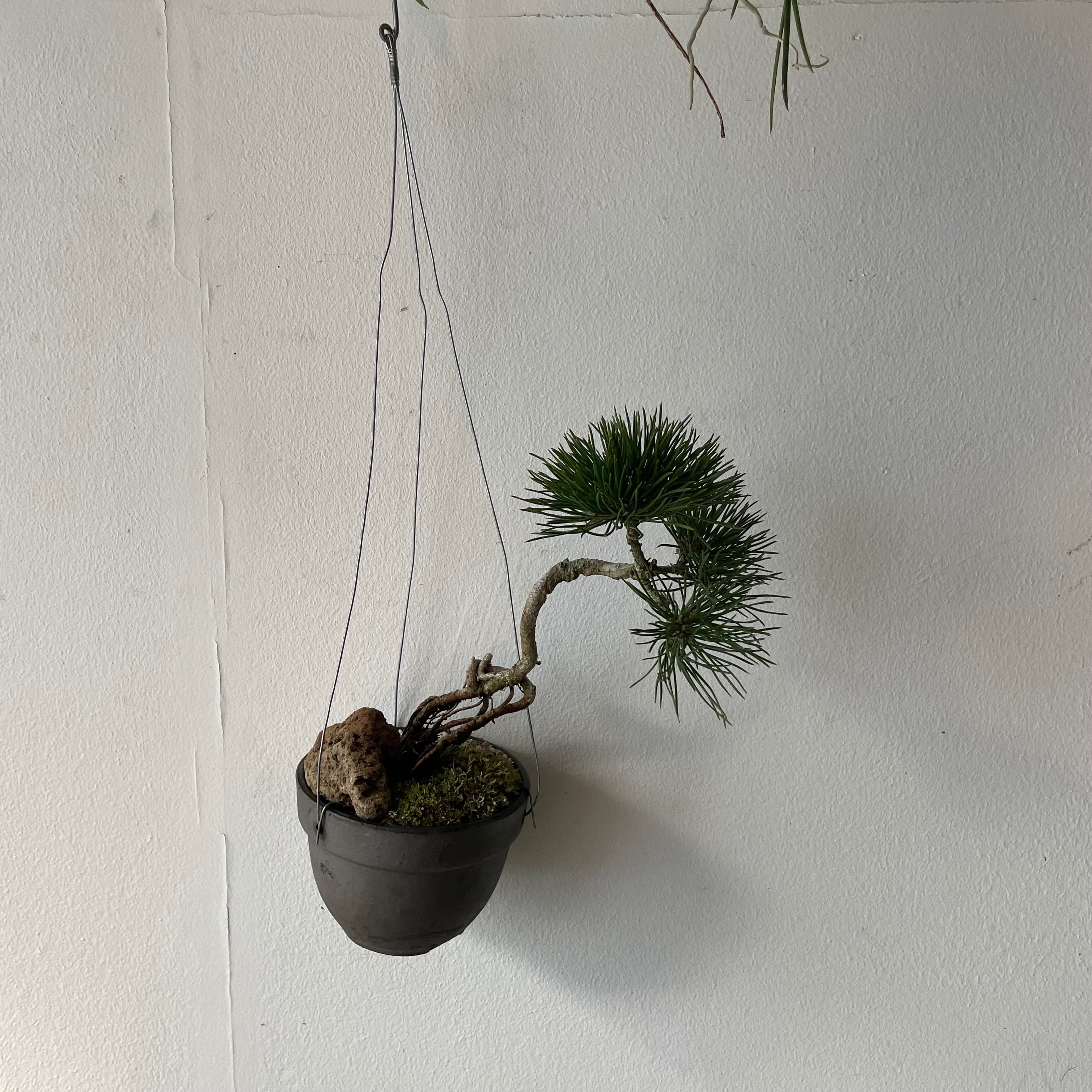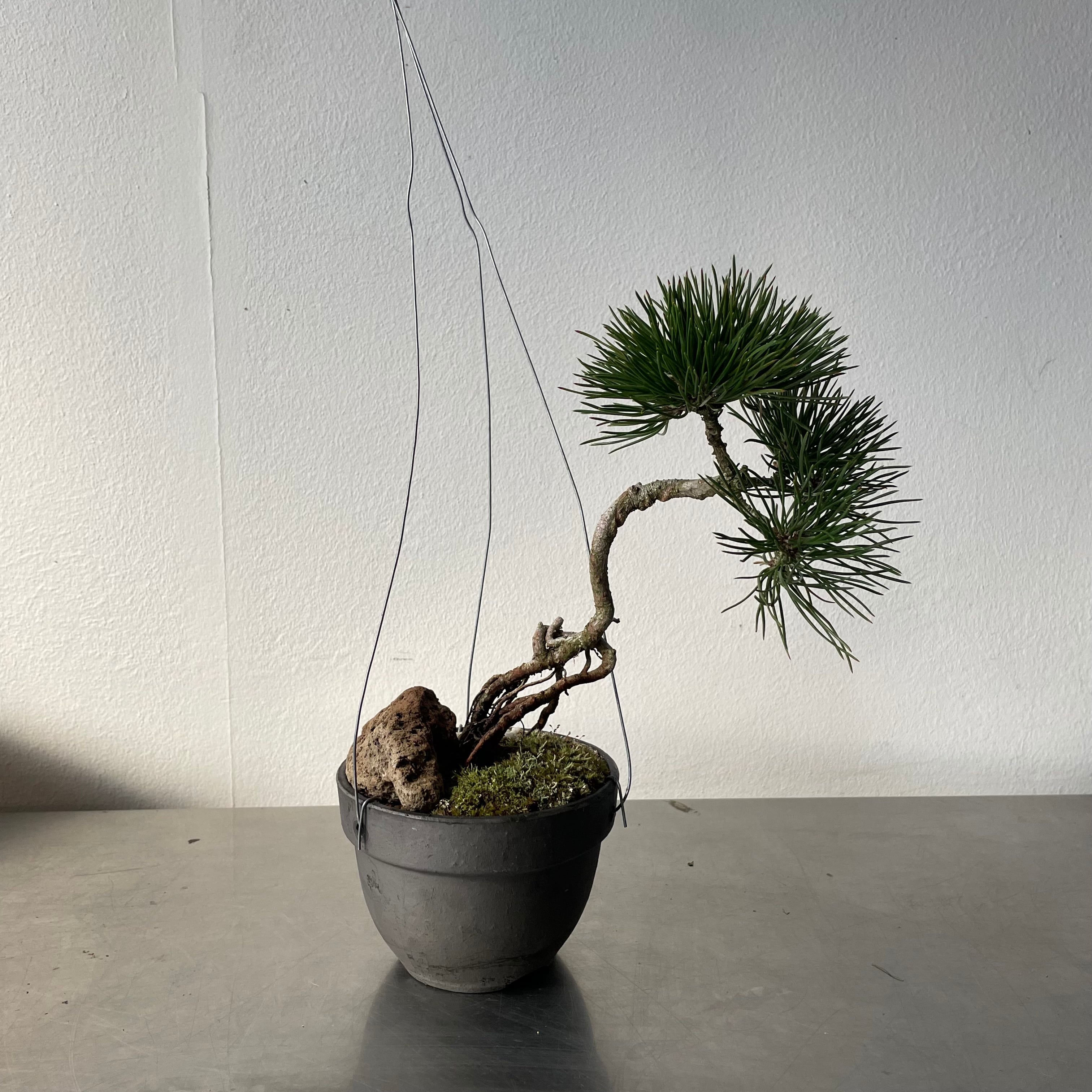 吊るすことも置くことも出来る黒松です。