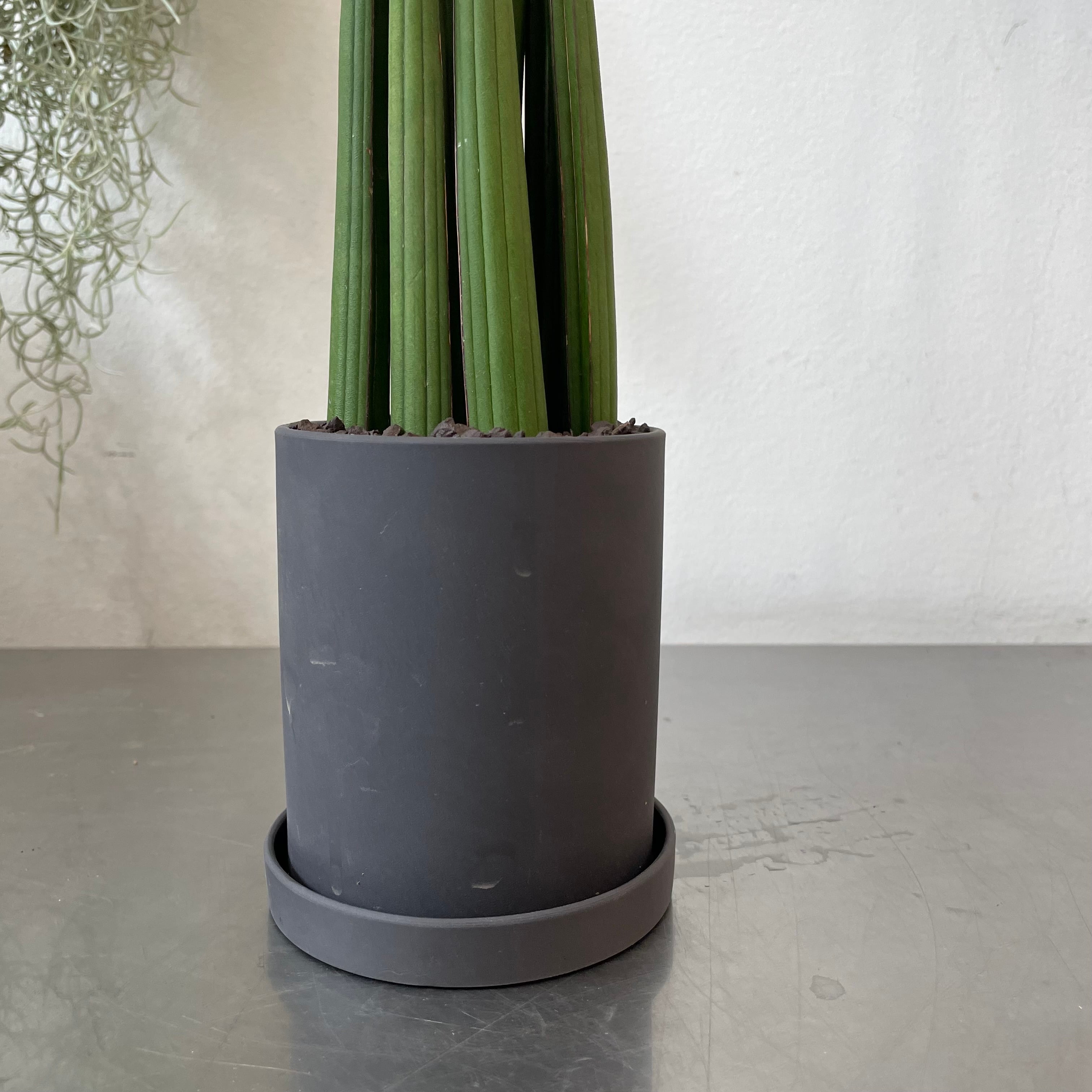 円柱状の硬い葉が真っ直ぐに伸びる非常にシャープでモダンな姿が特徴の観葉植物です。
